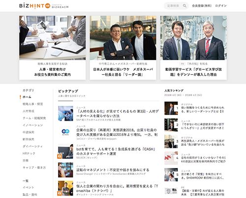新しい働き方、ダイバーシティ、イノベーション人材の育成、労働生産性向上のヒントをはじめ、人材や組織をテーマとした取材企画など、BizHint HR独自のコンテンツも拡充しています。