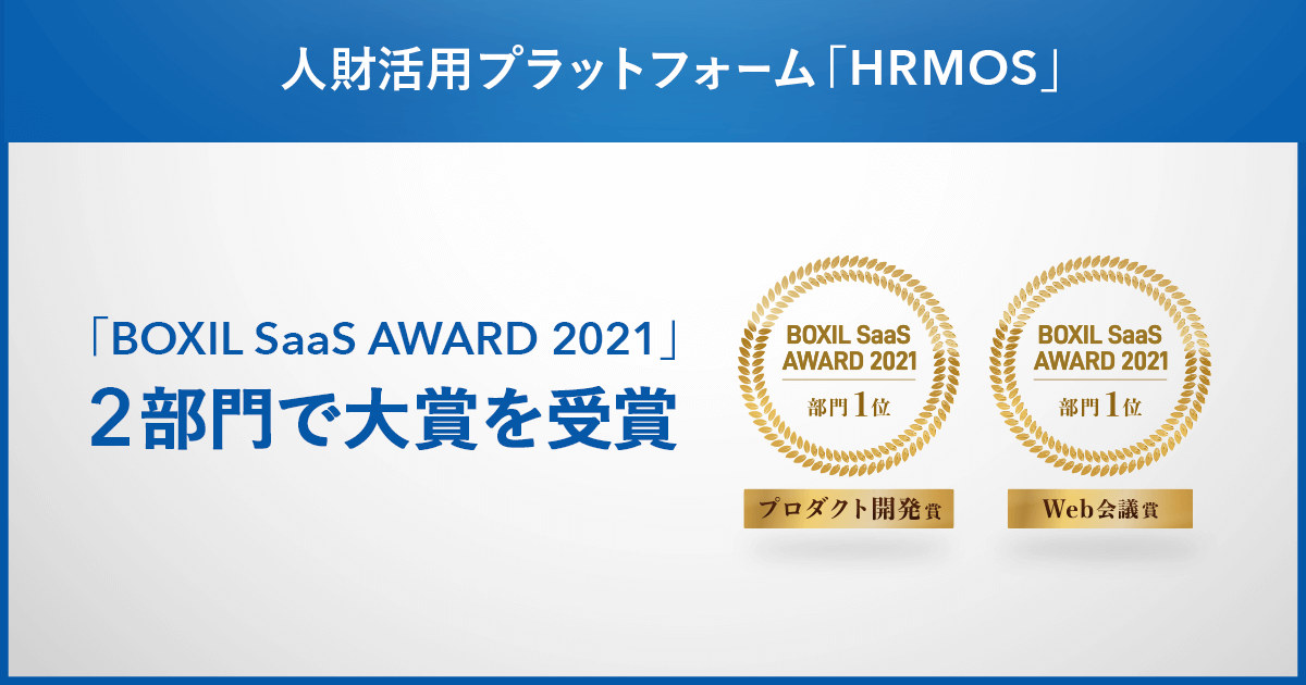 Visionalグループの株式会社ビズリーチ(所在地:東京都渋谷区/代表取締役社長:多田洋祐)が運営する、人財活用プラットフォーム「HRMOS(ハーモス)」シリーズは、「BOXIL SaaS AWARD 2021」において、「プロダクト開発部門」および「Web会議部門」で大賞を受賞したことをお知らせいたします。