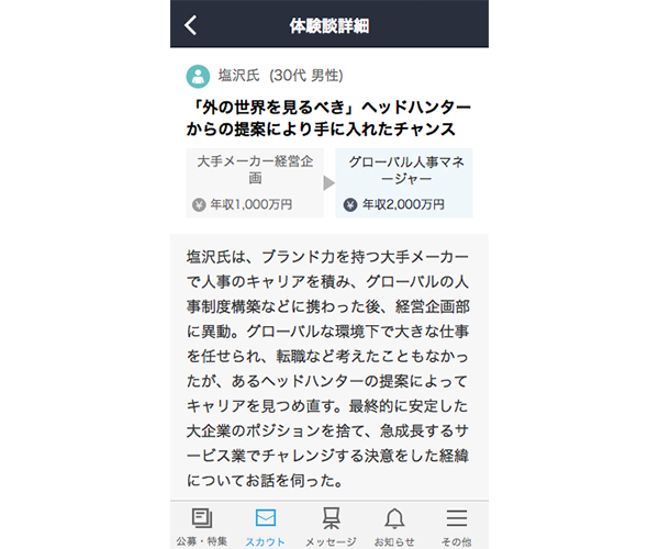 特長2)ハイクラス人材のキャリアアップ体験談が読める