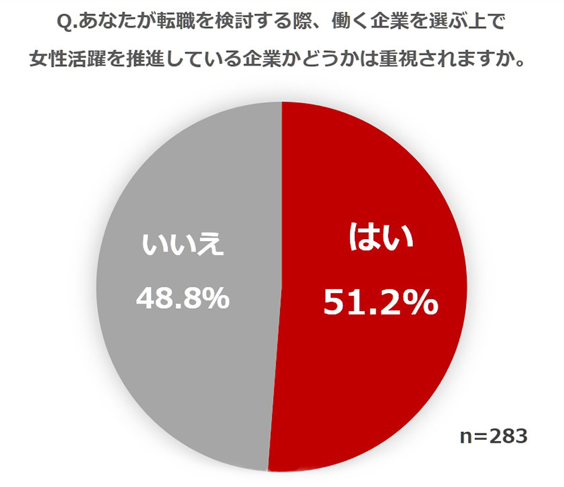 転職時に「女性活躍を推進しているかどうか」を重視する女性ビジネスパーソンは約半数