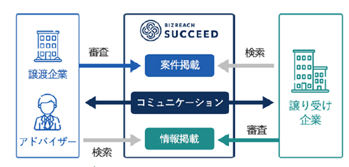 「ビズリーチ・サクシード」は、株式・事業の譲渡を検討している経営者(以下、譲渡企業)と、譲り受けを検討している企業(以下、譲り受け企業)をつなぐオンラインプラットフォームです。
