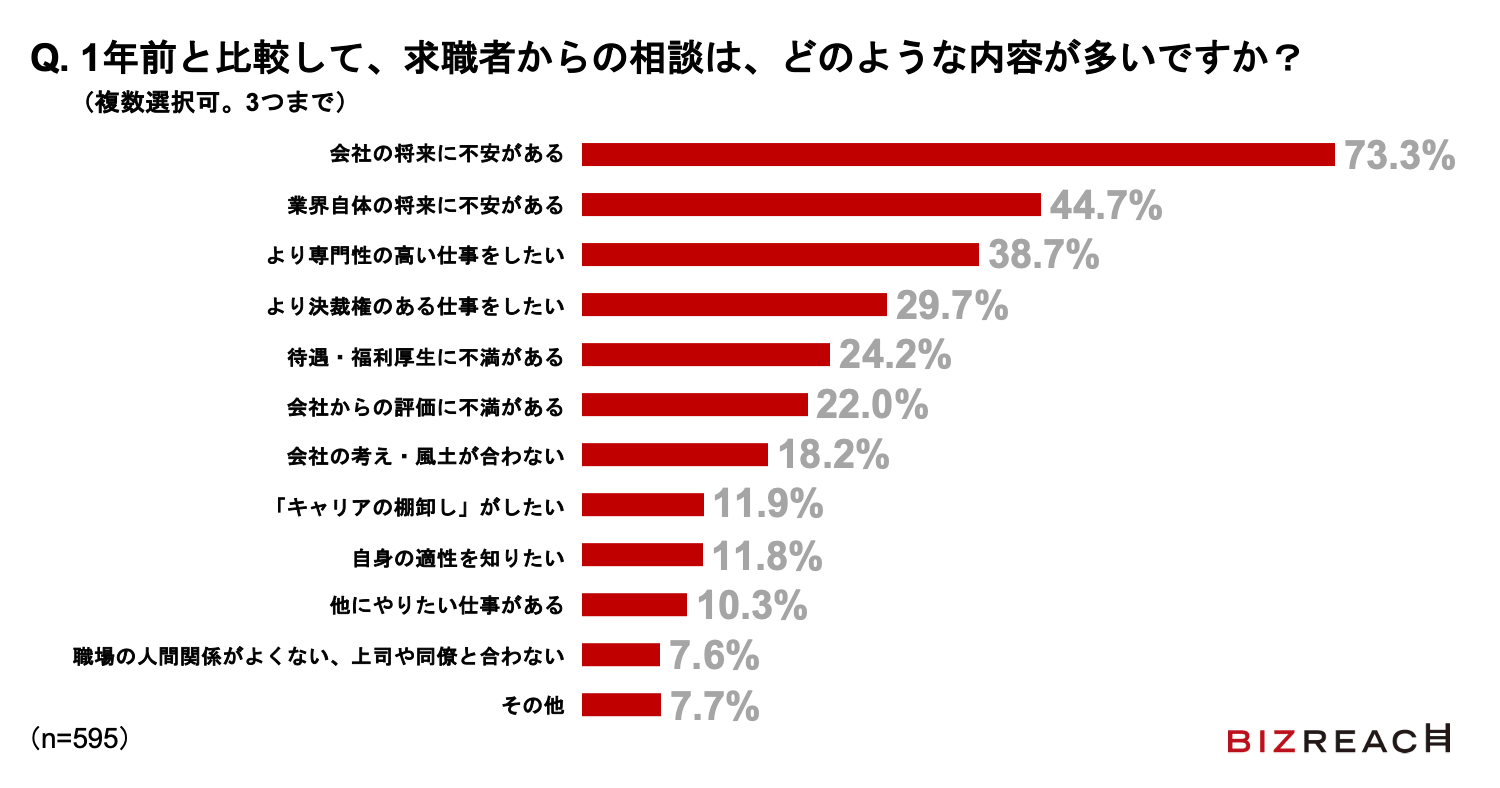 ヘッドハンターへの相談内容の1位は「会社の将来への不安(73.3%)」