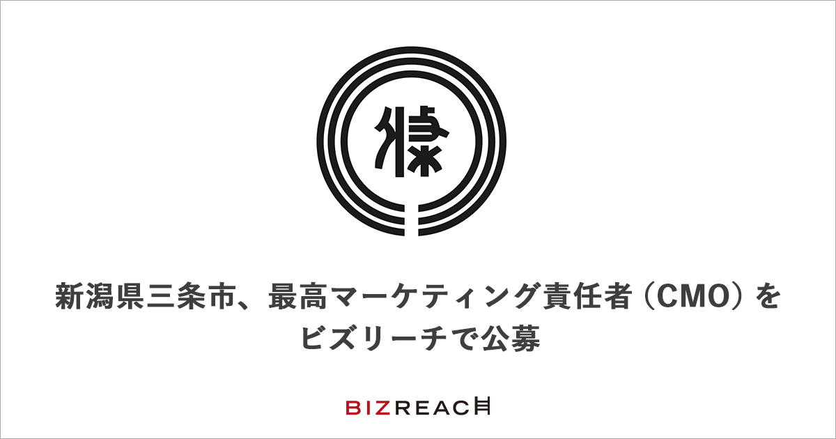 Visionalグループの株式会社ビズリーチ(所在地:東京都渋谷区/代表取締役社長:多田洋祐)が運営する、即戦力人材と企業をつなぐ転職サイト「ビズリーチ」は、新潟県三条市役所の最高マーケティング責任者(CMO)を、2021年7月9日から8月5日まで公募します。