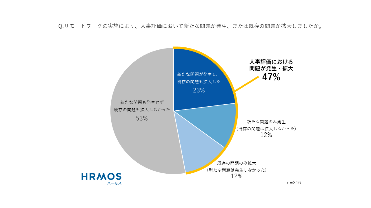 リモートワーク導入企業の人事評価:47%で新たな問題が発生、または既存の問題が拡大