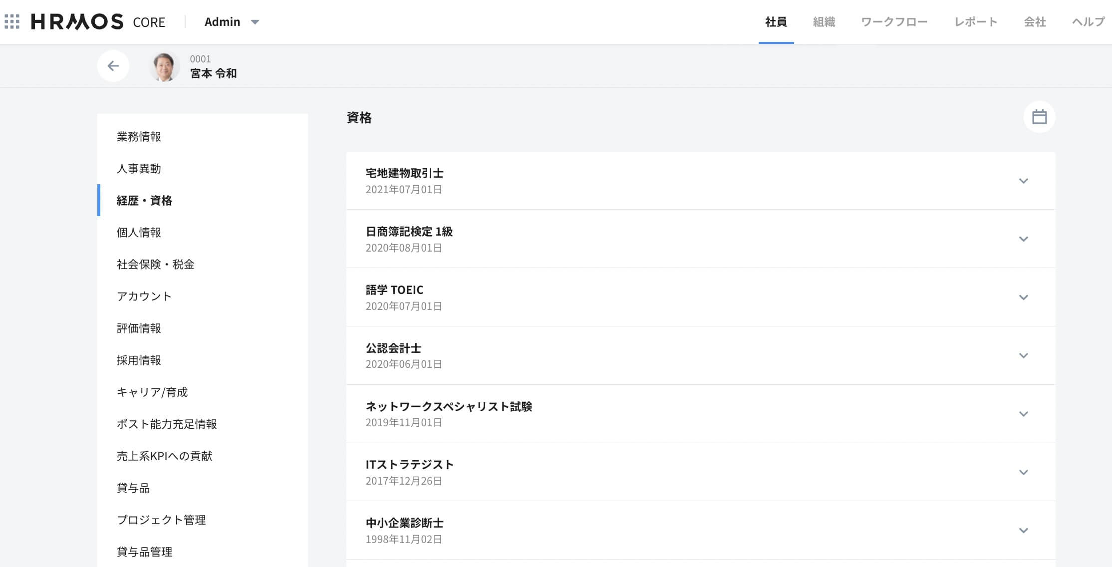 <HRMOSタレントマネジメント:資格管理のイメージ画面>
