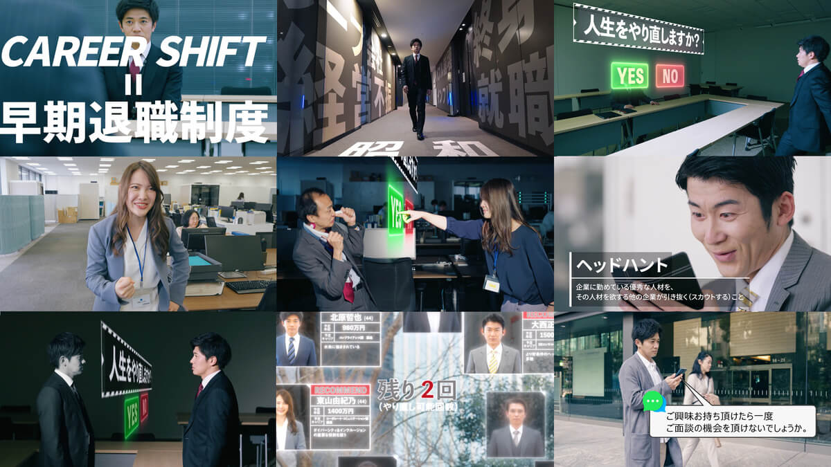 そしてこのたび、ビズリーチは、多くのビジネスパーソンにご自身のキャリアについて考えていただくきっかけづくりができればと考え、早期退職の対象となった44歳のビジネスパーソンを主人公にショートドラマを制作しました。本作品では、主人公のさまざまな選択を通じて、キャリアに向き合い続けることの重要性や、迷いながらも納得できる自分らしいキャリアを描くことの大切さを表現しました。