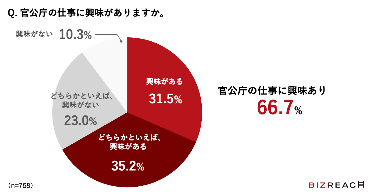 Visionalグループの株式会社ビズリーチ(所在地:東京都渋谷区/代表取締役社長:酒井哲也)が運営する、即戦力人材と企業をつなぐ転職サイト「ビズリーチ」は、官公庁の仕事に関するアンケート※1を実施しました(有効回答数:758)。