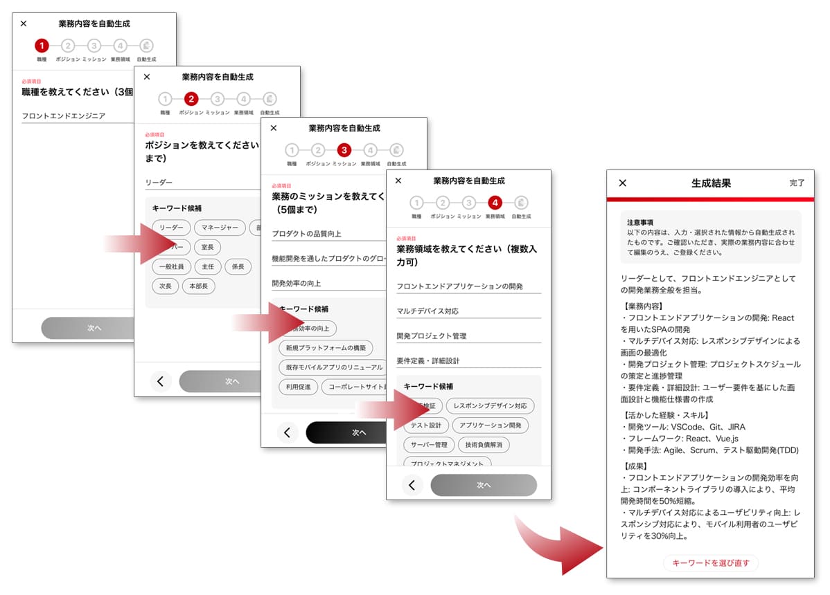 - 回答内容を基に、AIが自動で業務内容の文を作成