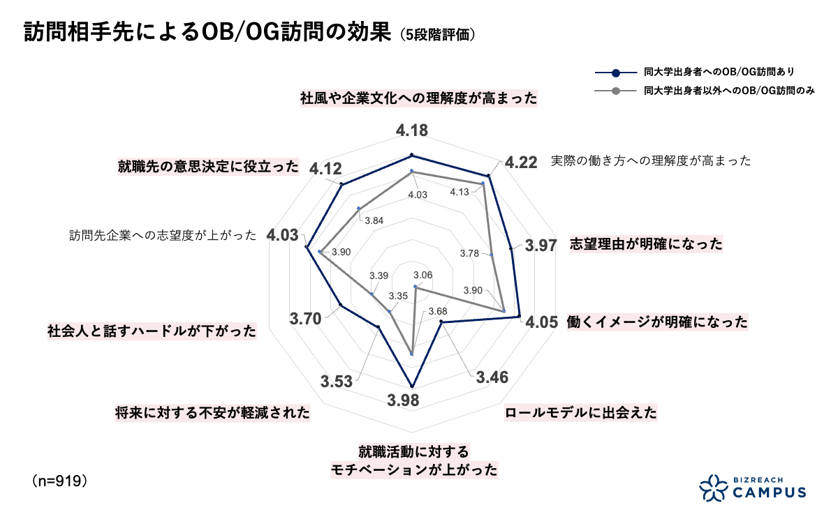 OB/OG訪問が「訪問先企業への志望度アップ」に有効