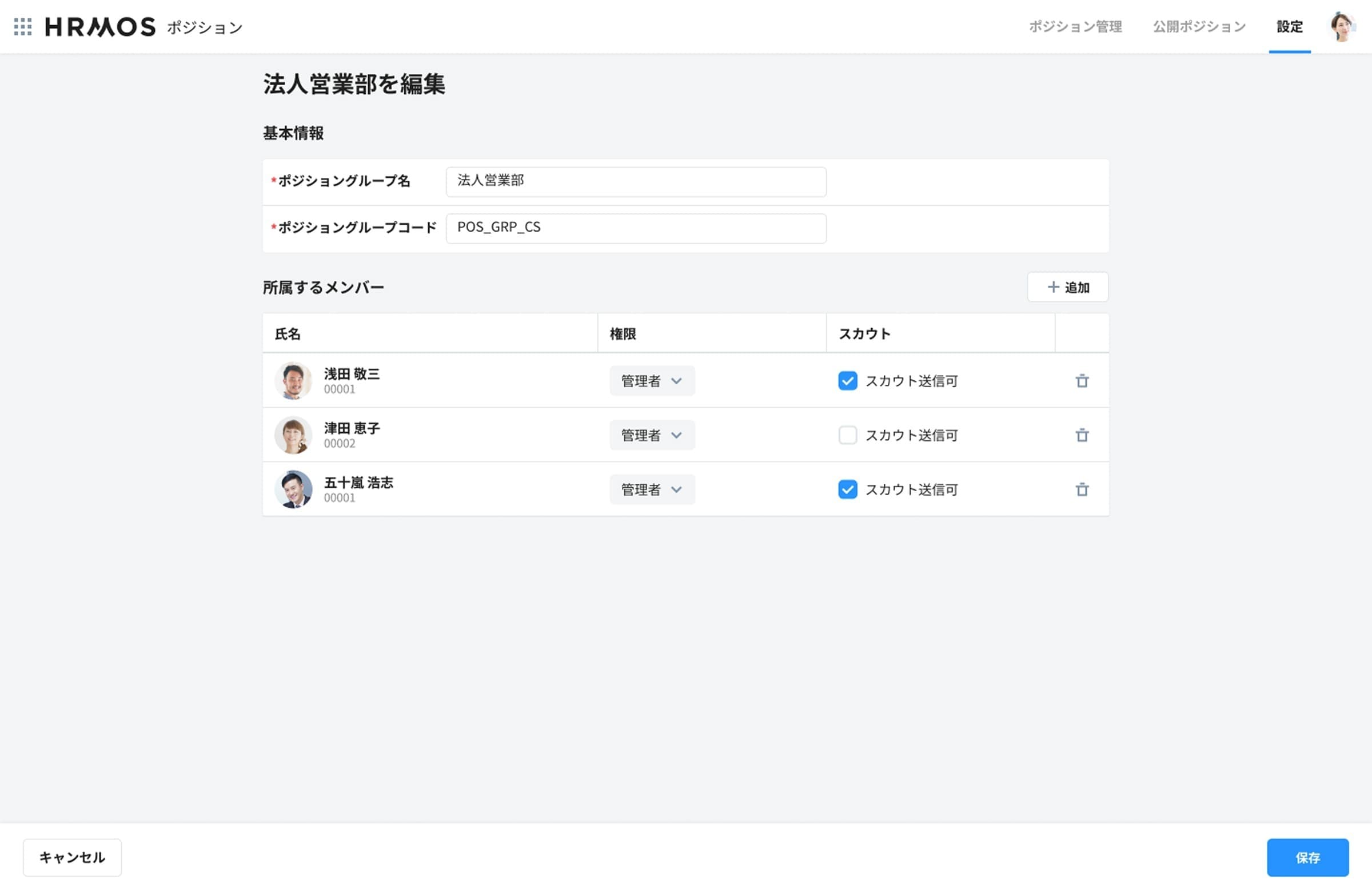 ポジション単位でスカウト送信が可能な社員を設定 -